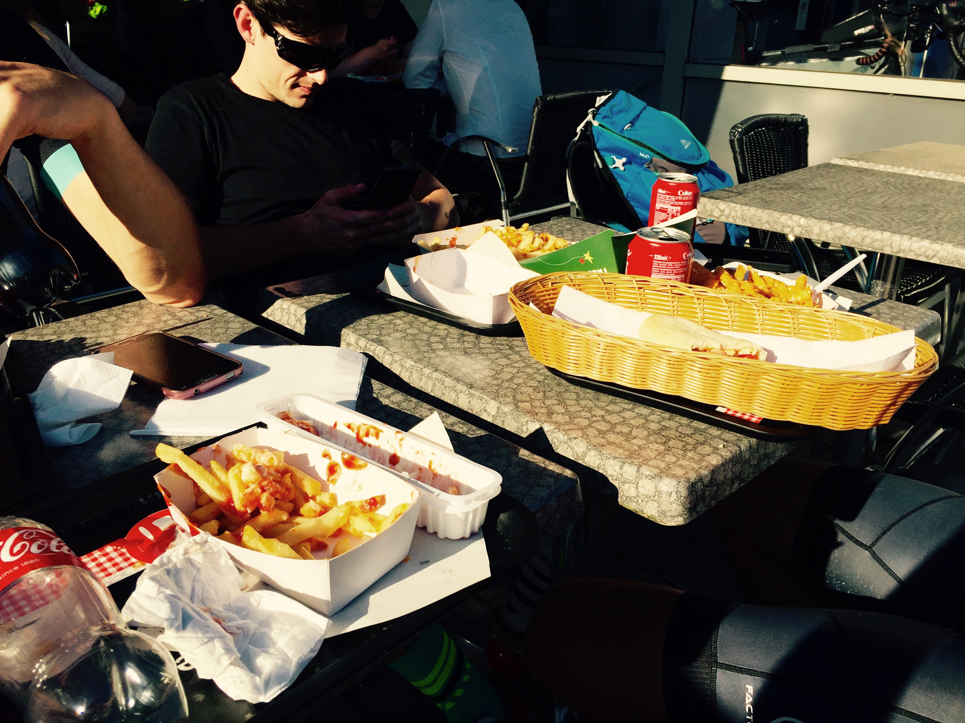 Had a look at the checkin place, talked to Mike Hall shortly, went for classic Belgium fried dinner.