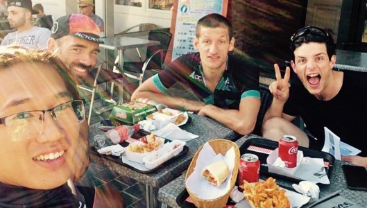 Race meeting at 1700, arrived with the Belgium way of cup noodles, carbonara carbs and crazily salty bacon! Jeff and Josh listening to Mike.