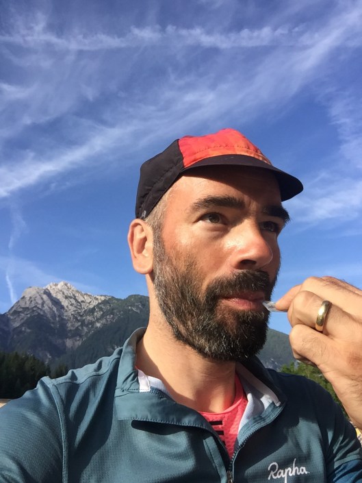 Making good progress on the road, shortly before entering Kreuzbergpass/ Passo Monte Croce, dangerously looking dark clouds appeared behind of me. As it started to rain around 2230, I decided to find a shelter as long as it was raining. So I stopped at a hotel and waited for more than two hours, trying to sleep a little but I actually failed, as the small lobby wasn’t the place to feel comfortable enough to get some proper sleep. One of the guests showed me his forecast with an even bigger cloud and thunderstrom areal heading to where I stopped. So I decided to get out of this as soon as possible. When the strokes were gone and the rain got a little less, I moved on. Even I got wet and the next descend was not far. Whatsoever, at some point in the early morning I was too tired to continue, only riders mode, not race mode. So I finally found a shelter behind a small Italian chappel in a small village just next to the river. I took a good sleep and decided to get up as the sun kissed my face. What a wonderful morning. Blue sky, birds singing, water was running down the small river just next to me. Tried to dry my leg and arm warmers and headed on to find some Italian breakfast. Around four hours later I decided to stop next to a busy road, close before Udine. Had two caffè and three or four pieces of sweet pasta. Now nothing could happen to me anymore. Still a great day, I remembered this road from last years tcr and I had some strong showers on it, heading into the same direction. From Udine I made a little turn to Trieste as I wanted to check some building along the old harbour. On my way there I met a guy from Slovenia on his bike, heading down to Pula. We chatted a while, we talked about bike packing and that he loves to taylor his very own stuff as his family was in a similar business. This is what I was looking for. All our sewing machines failed to do that job, now there might he a way to get things solved. He was happy to join to the old port of Trieste, and we speeded up quite a bit. Had some Pizza together and then he moved further south and I tried to get up the hills back onto my track loosing another worthy minutes, as I wanted to pay a short visit to Stefano. This guy has a small but very excellently selected sports shop in Bisovizza. He safed my life when my achilles were hurting so much and I could not find any compression socks that I could wear in my bike shoes. After seeing his shop by chance, I jumped in almost as my last chance. We talked for a while, he showed my some black options and I told him that I will die in his sock if I was wearing black heading further into the heat. After a good while, he went into his personal stock and gifted me one pair of his very own socks. Later we went for an espresso and he showed me an excellent place for diner where I rested for hours as I met Camille from the tcr media crew there.