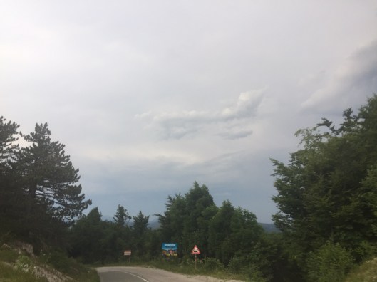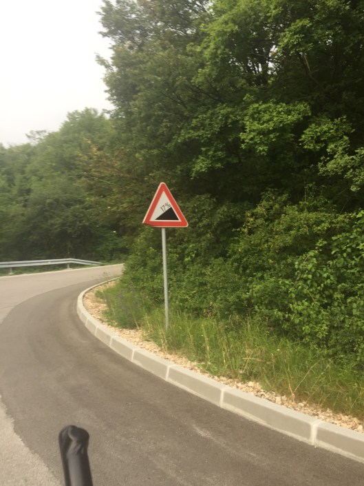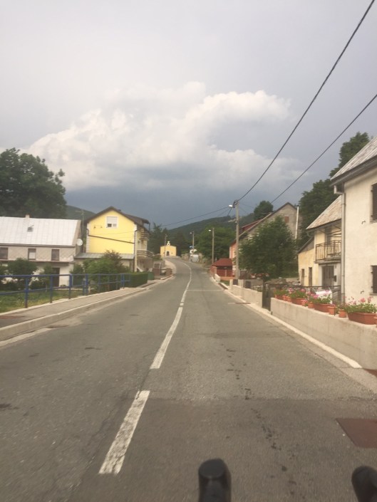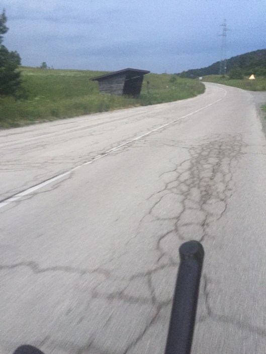 I left again, only to be on my own again (fully self-supported). I just went for another hour or 1 ½ hrs, not as planned. I had a rest in the slim shadow of a tree but it got too hot, so I decided to continue after an hour or two. I reached Ucka at the worst time of the day, during noon I climbed Ucka, knowing I did not have sufficient water with me. I knew there was a foundation even though it was quite close to the top. I went up very slowly, stopped in every shadow that I could find and tried to keep it easy, which was not easy at all. I truly wanted to avoid walking it up. When I reached the foundation this was the best moment of the entire day, safe! Drinking rinsing, refuelling. Perfect. Getting down on the other side, I stopped at the first bakery, bought some savoury and greasy burek and some yoghurt drink. I had a proper rest after Ucka in front of the majors house and also another sleep during the afternoon heat. Waking up getting an Espresso and a coke at the café nearby and back on the road. Getting through the center of Rijeka and up into the hills again. I chose a tougher way towards Zagreb, but why not. I was familiar with the road until Hreljin. From thereon the road went up straight onto the mountains. I did not really realize it like that, but now I was here. At that moment I was certain the road sign with the stiffness percentage was THE most favourite one all around Rijeka. Really stiff climbs on cobble stones and cobble stone corners thank you. The sky in my direction got darker and darker. Every village that I passed I checked for a shelter, just in case the big clash would happen just when I would have left the village. Slowly I headed on. At Delnice I made a Cevapcici stop with some tea to get dry again, as I met some proper rain, the strokes had not been above me, so I continued until Delnice. I asked to recharge my power bank and my phone, to have some backup. I asked the waiter for pen and paper as this territory was unknown to me. Last year I crossed Slovenia, this year I sticked to the rules, To follow this target I needed to get the village names and turns on a paper, this took a good while, but I could finish it to check point 02 and in addition from cp02 until Osijek. I spent two hours or so and continued, with a fully satisfied stomach. He asked for a sleep which I accepted around two o’clock in the morning. Bus stop shelter.
