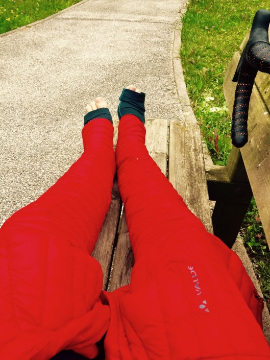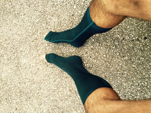 I finally found my long awaited compression socks. He owns a tiny excellently equipped sportsshop on my track. We talked for a while and finally he gave me one his own collection socks. Amazing.